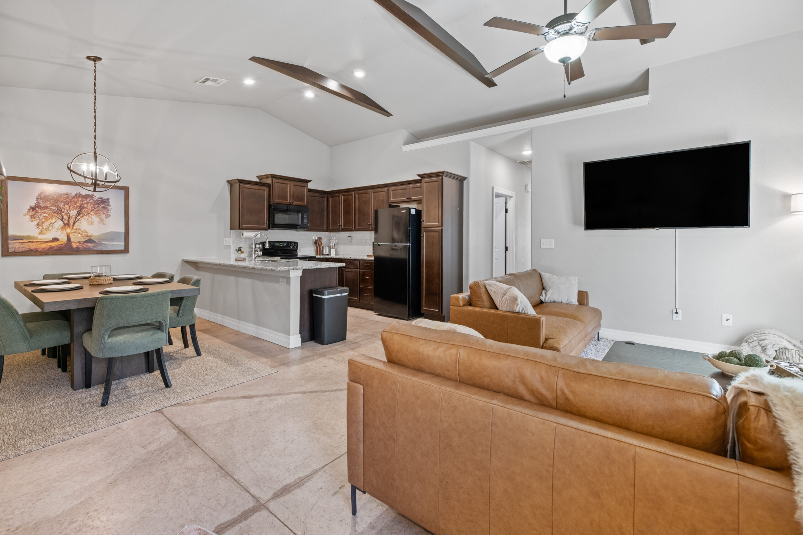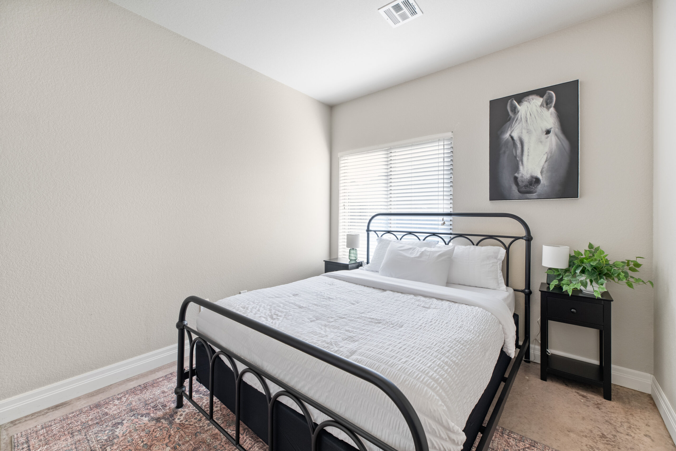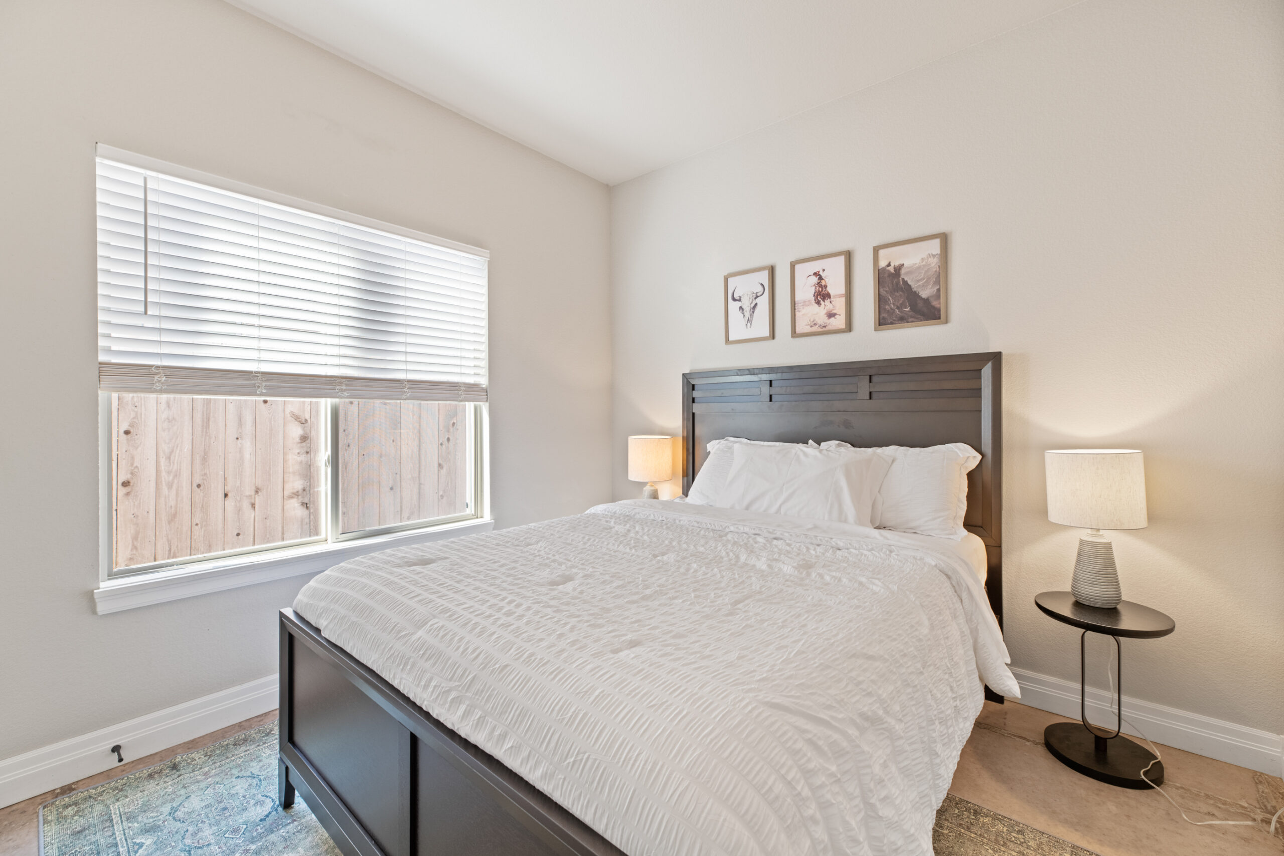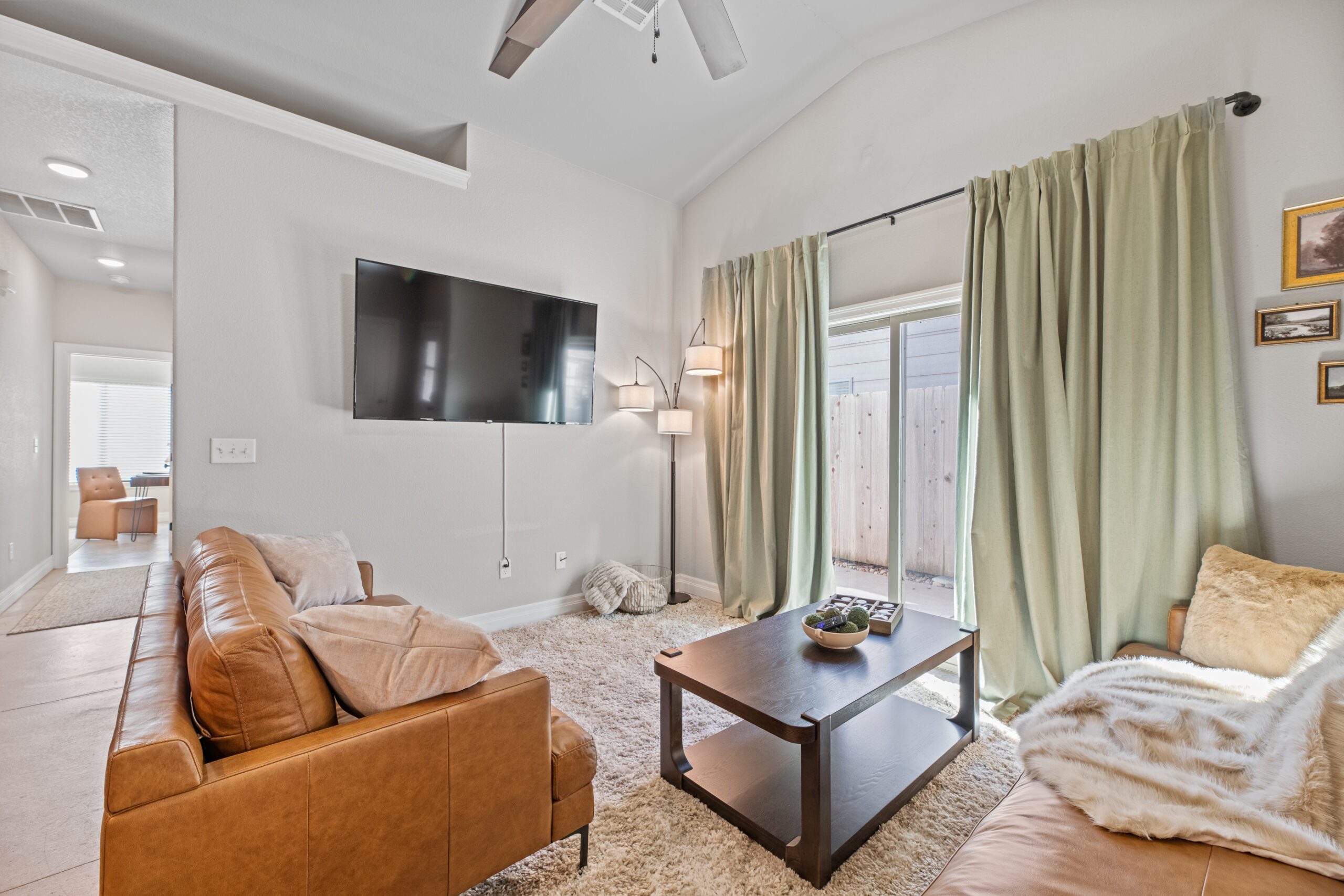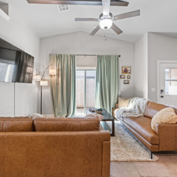 Located in a beautiful, quiet neighborhood is this beautiful 3 bed 2 bathroom single level home with a garage! This property has a large shared fenced in back yard. This property is perfect for corporate guests, couples, and families.