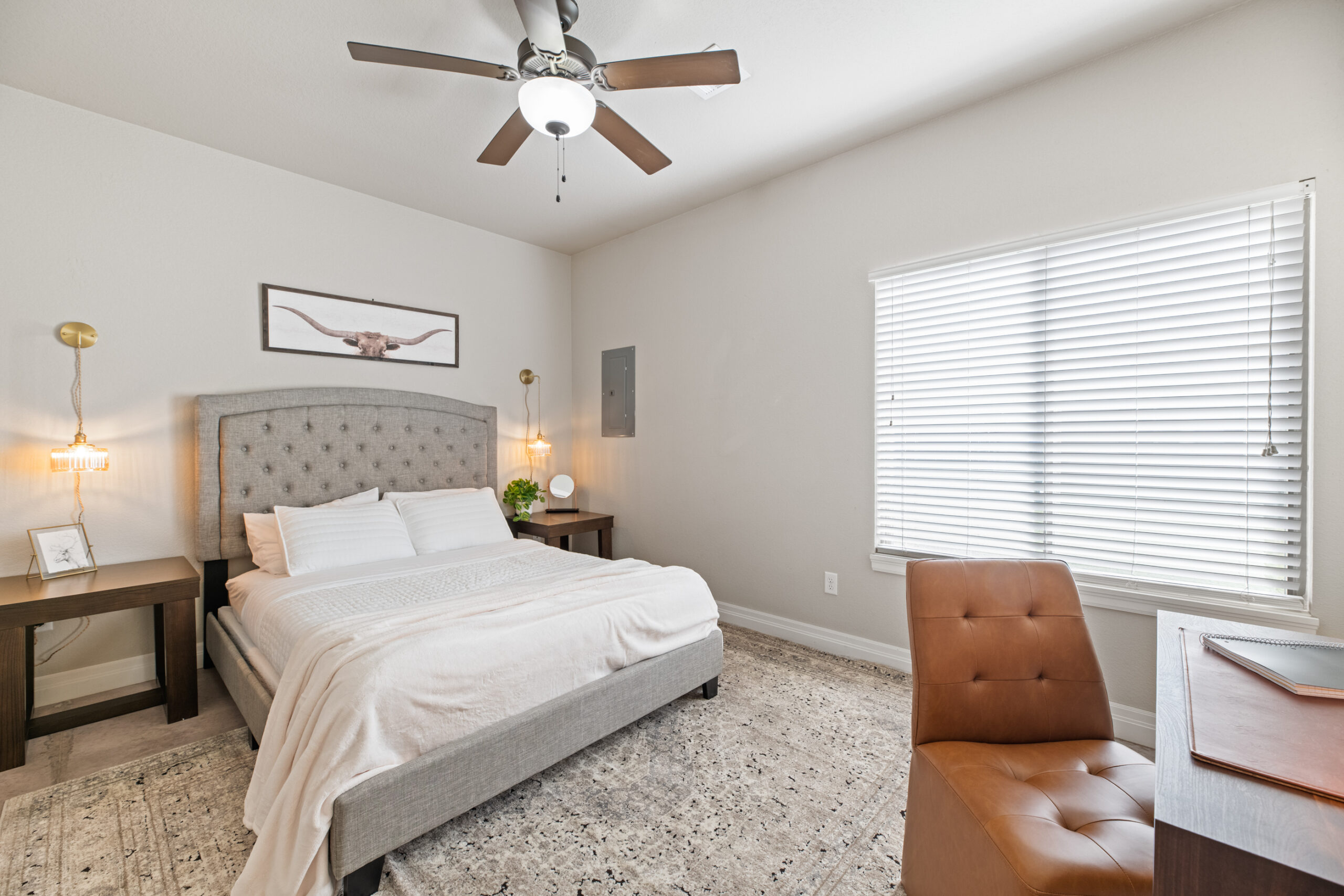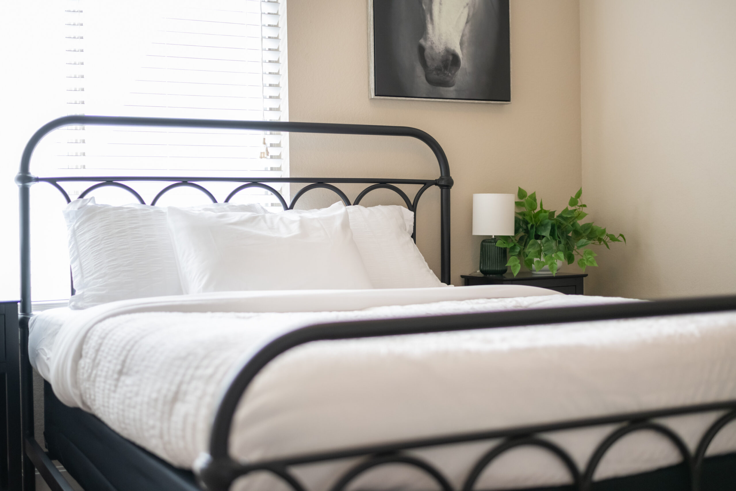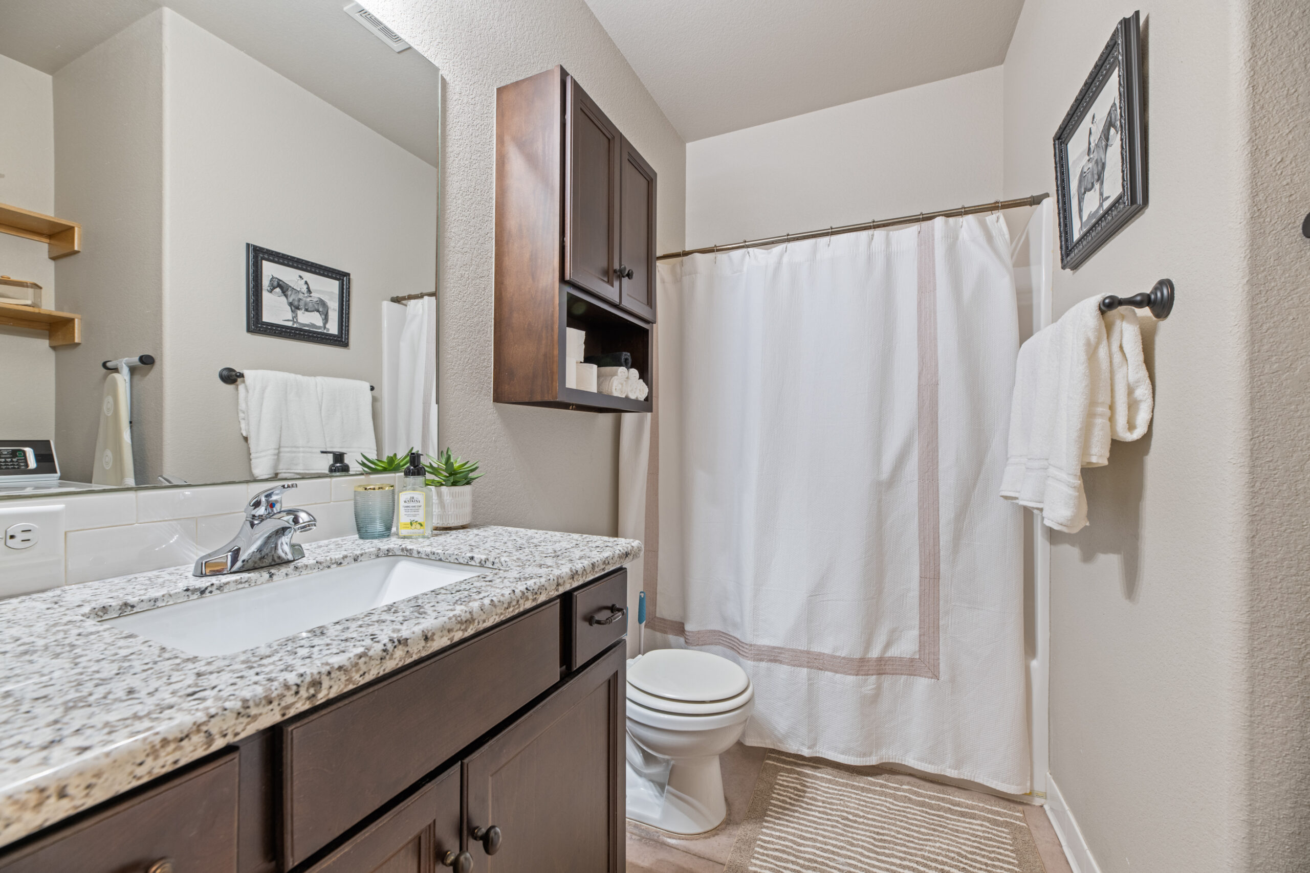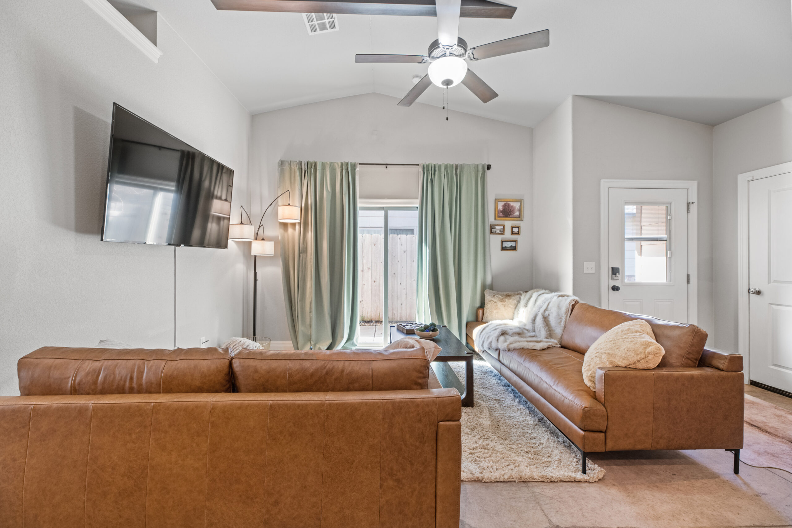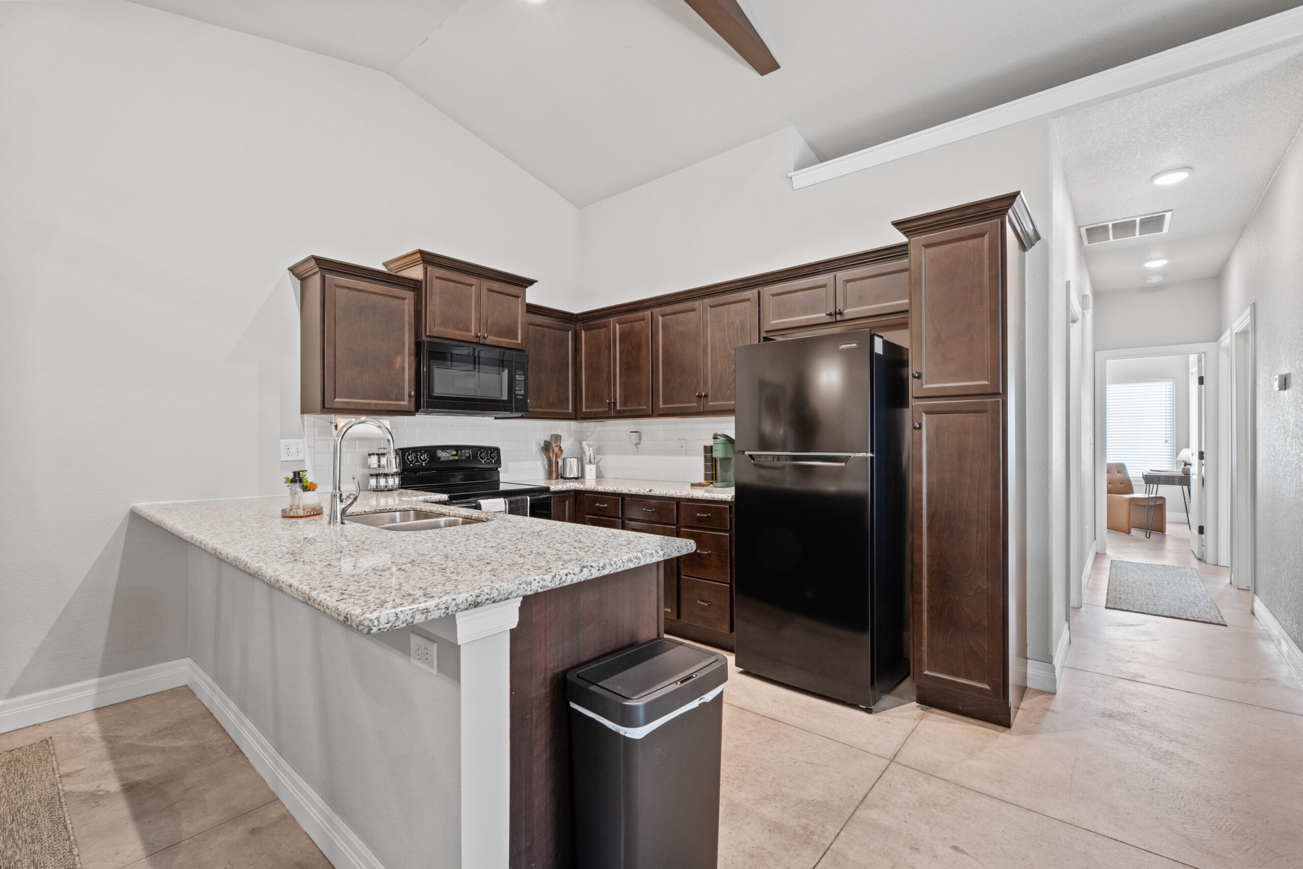 Located in a beautiful, quiet neighborhood is this beautiful 3 bed 2 bathroom single level home with a garage! This property has a large shared fenced in back yard. This property is perfect for corporate guests, couples, and families.
