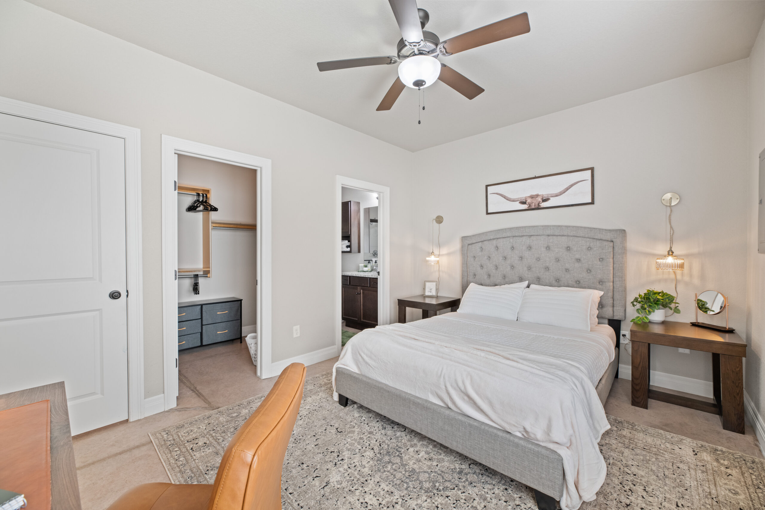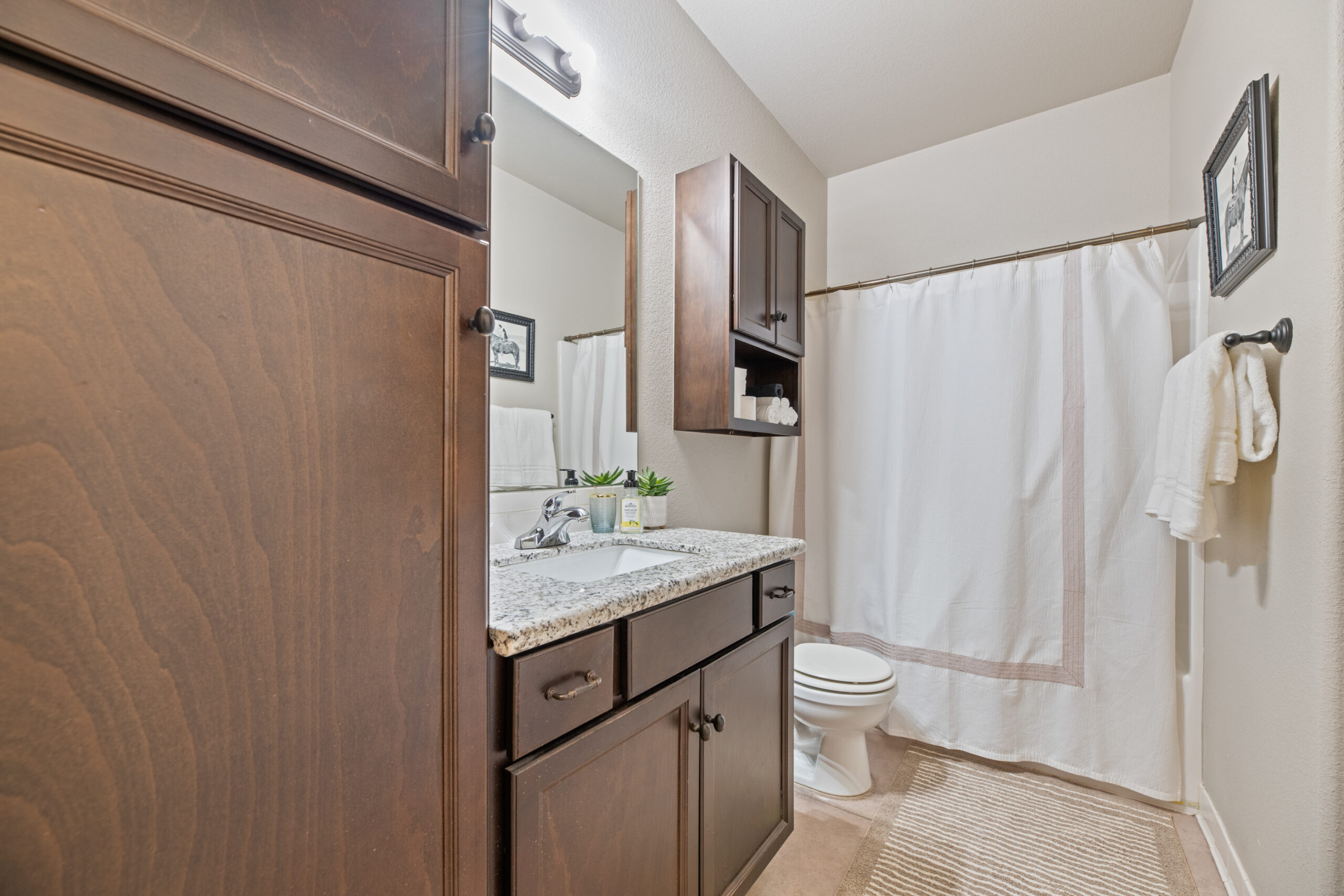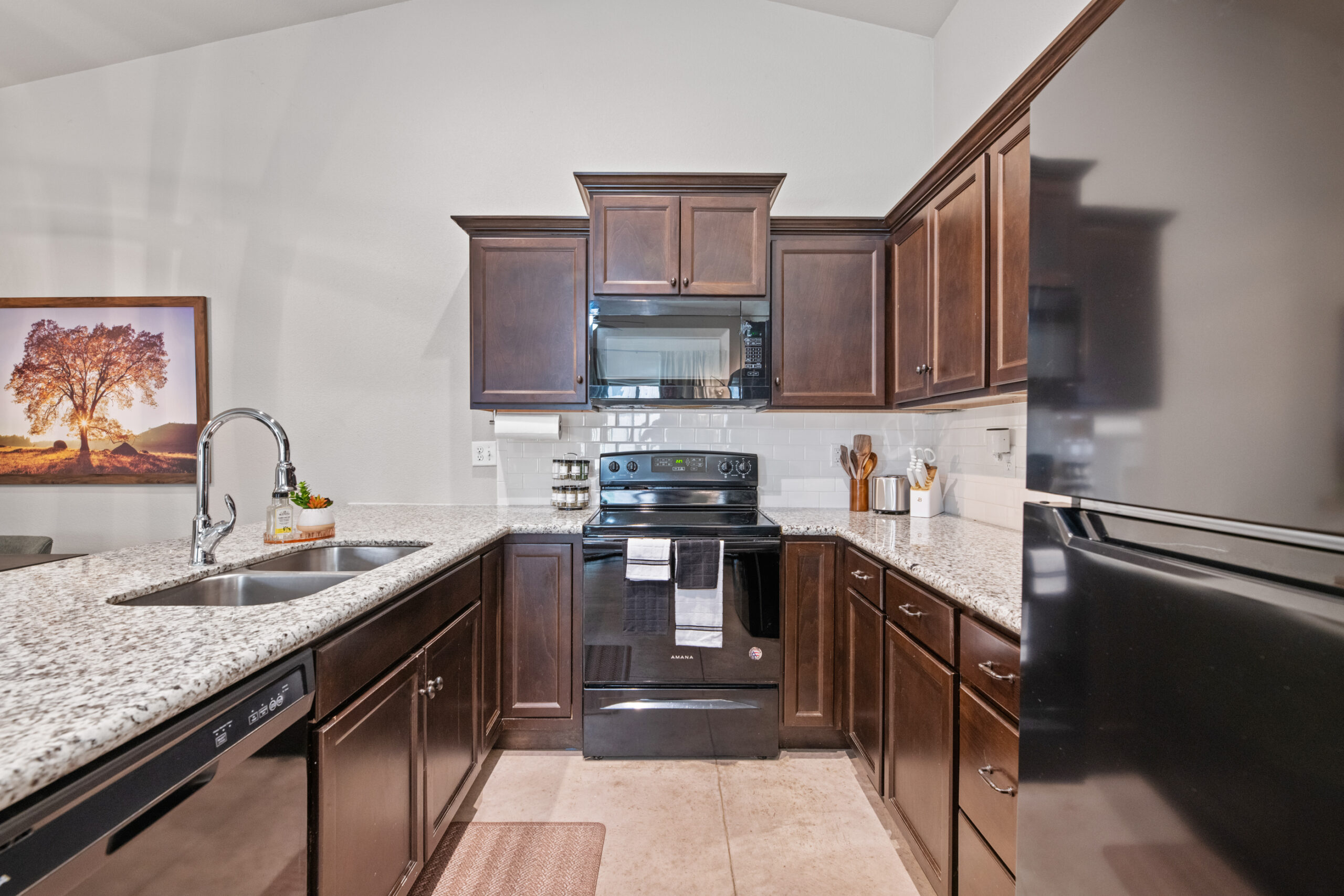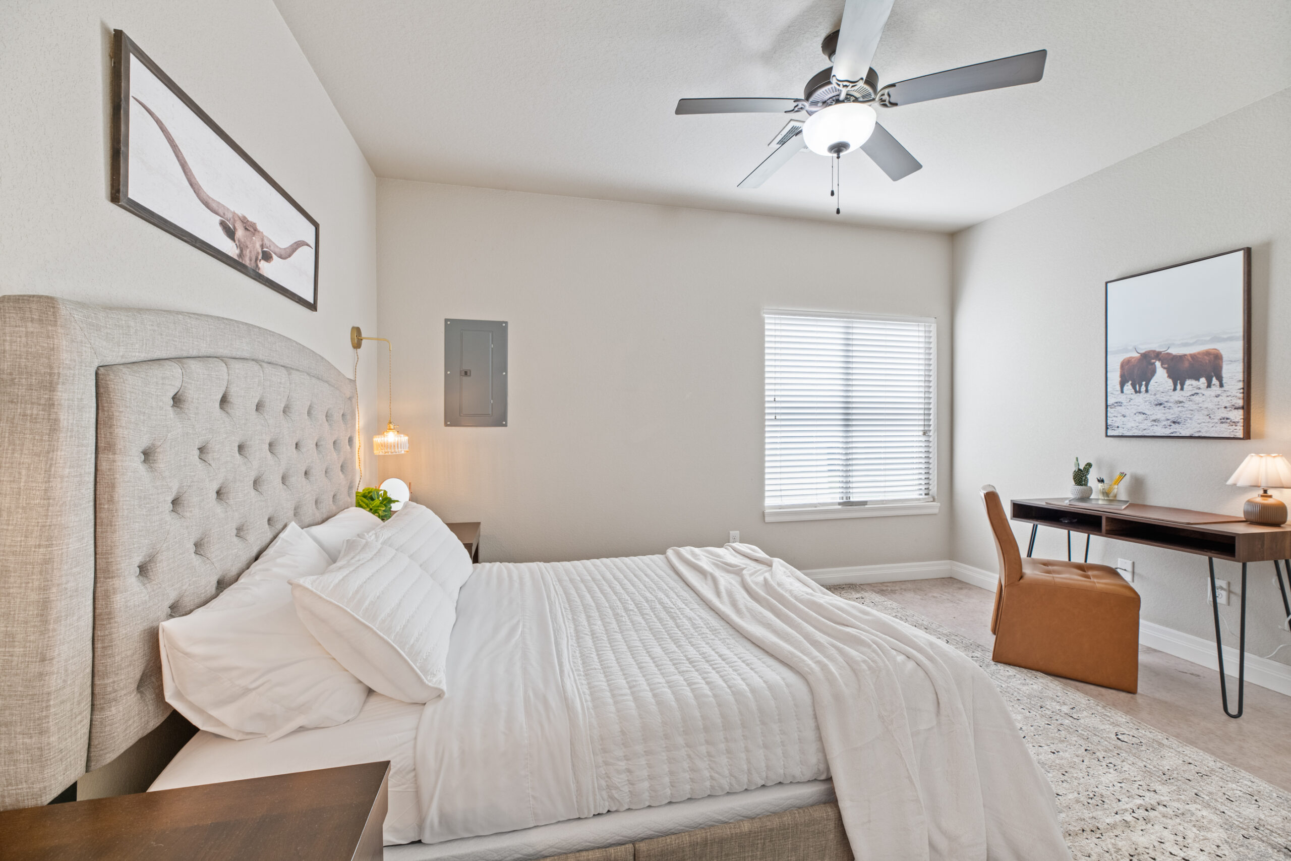 Located in a beautiful, quiet neighborhood is this beautiful 3 bed 2 bathroom single level home with a garage! This property has a large shared fenced in back yard. This property is perfect for corporate guests, couples, and families.