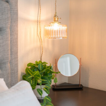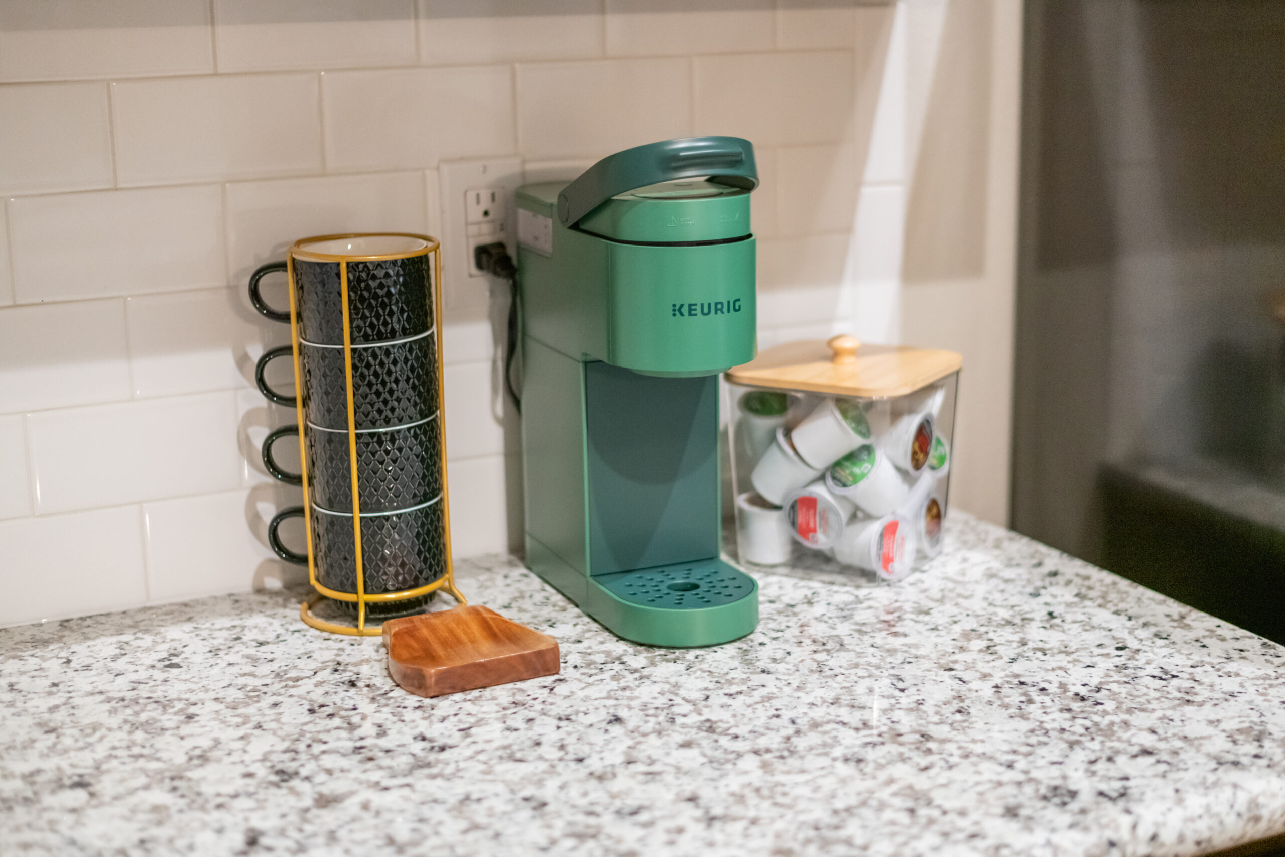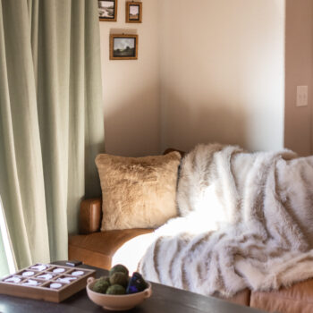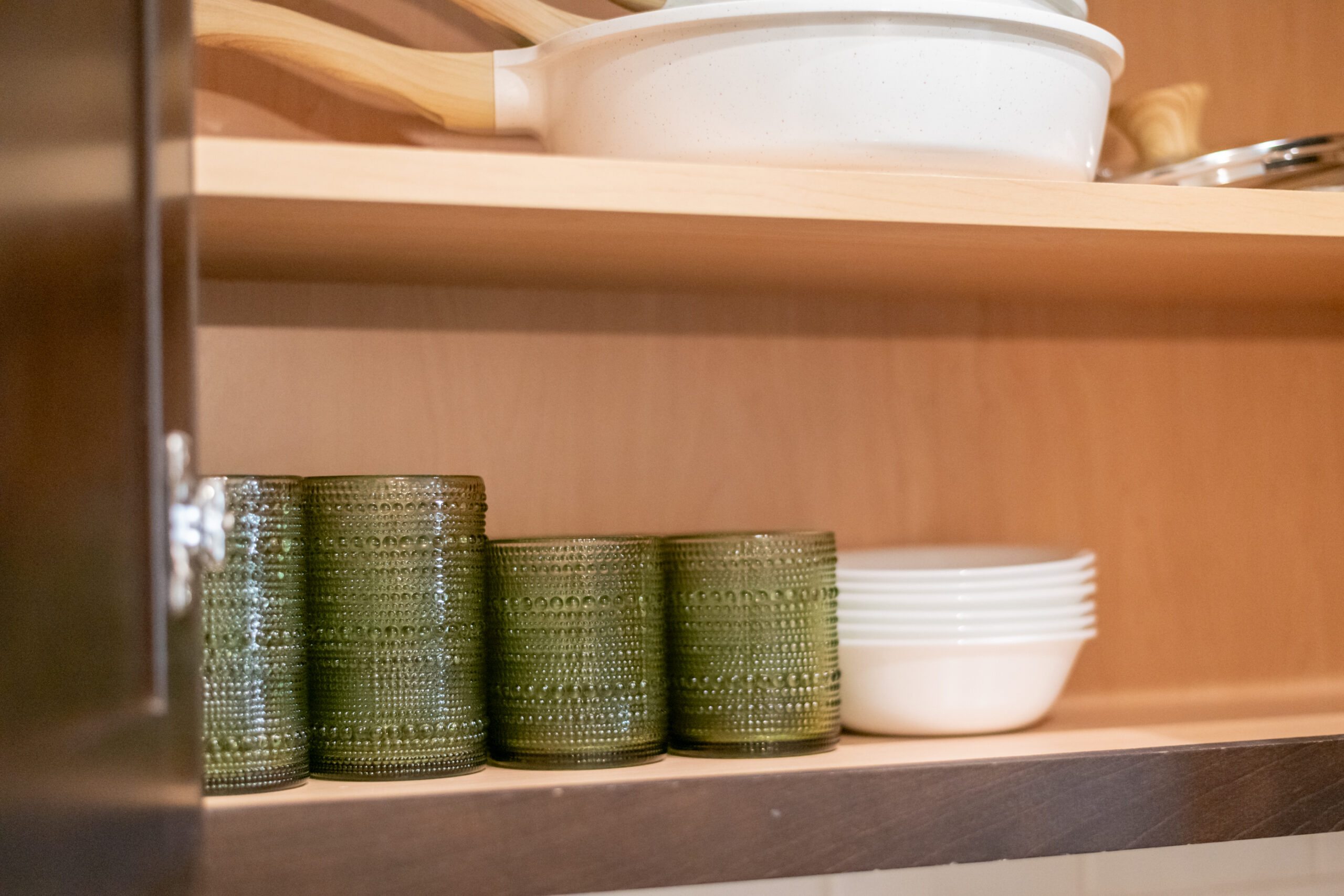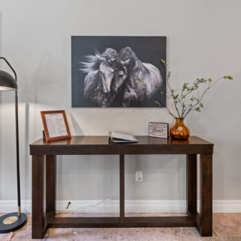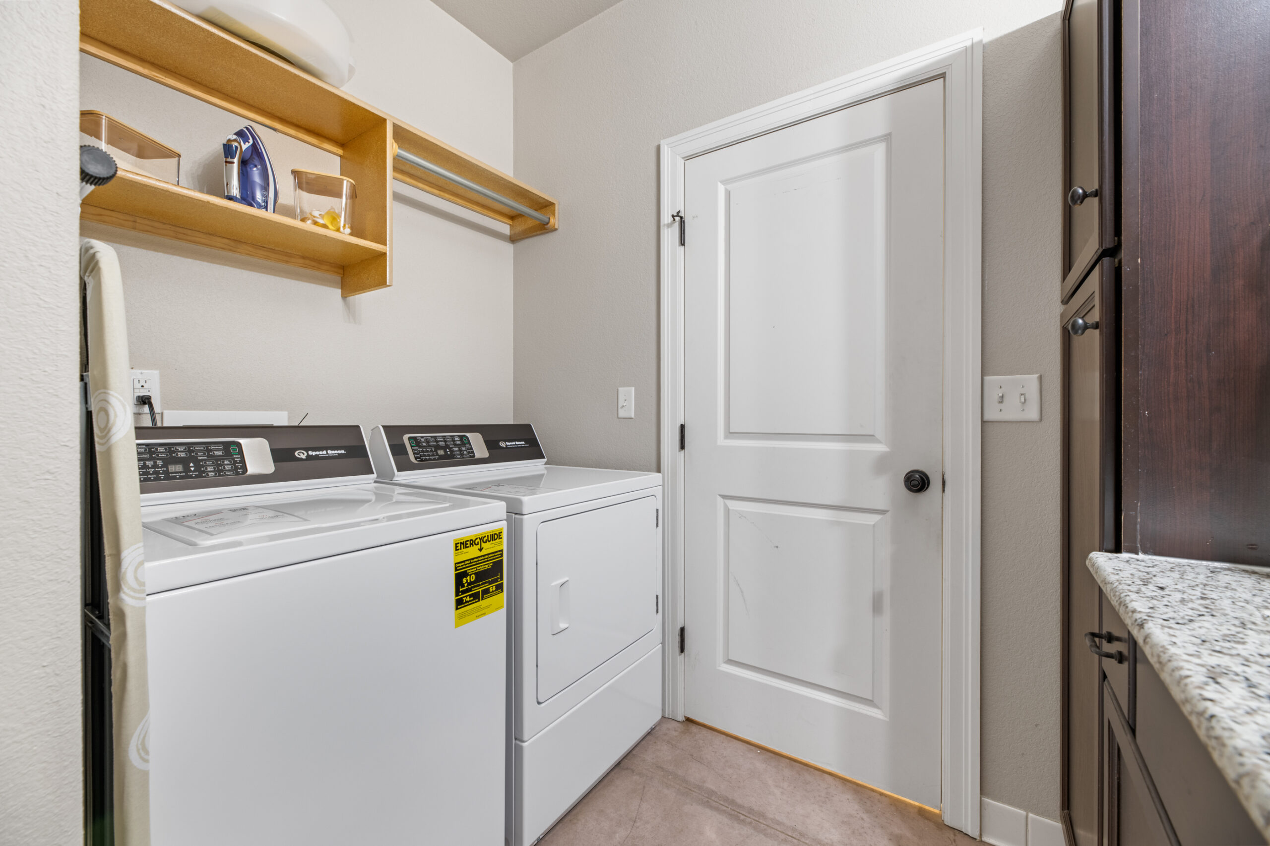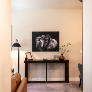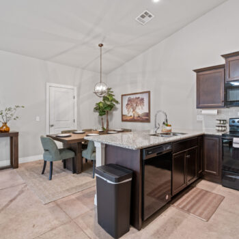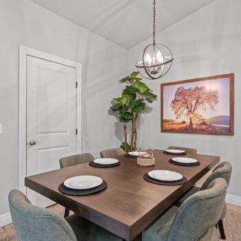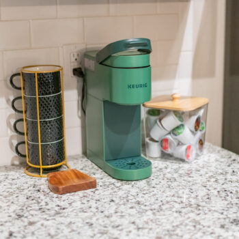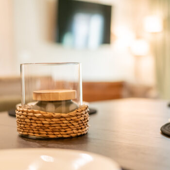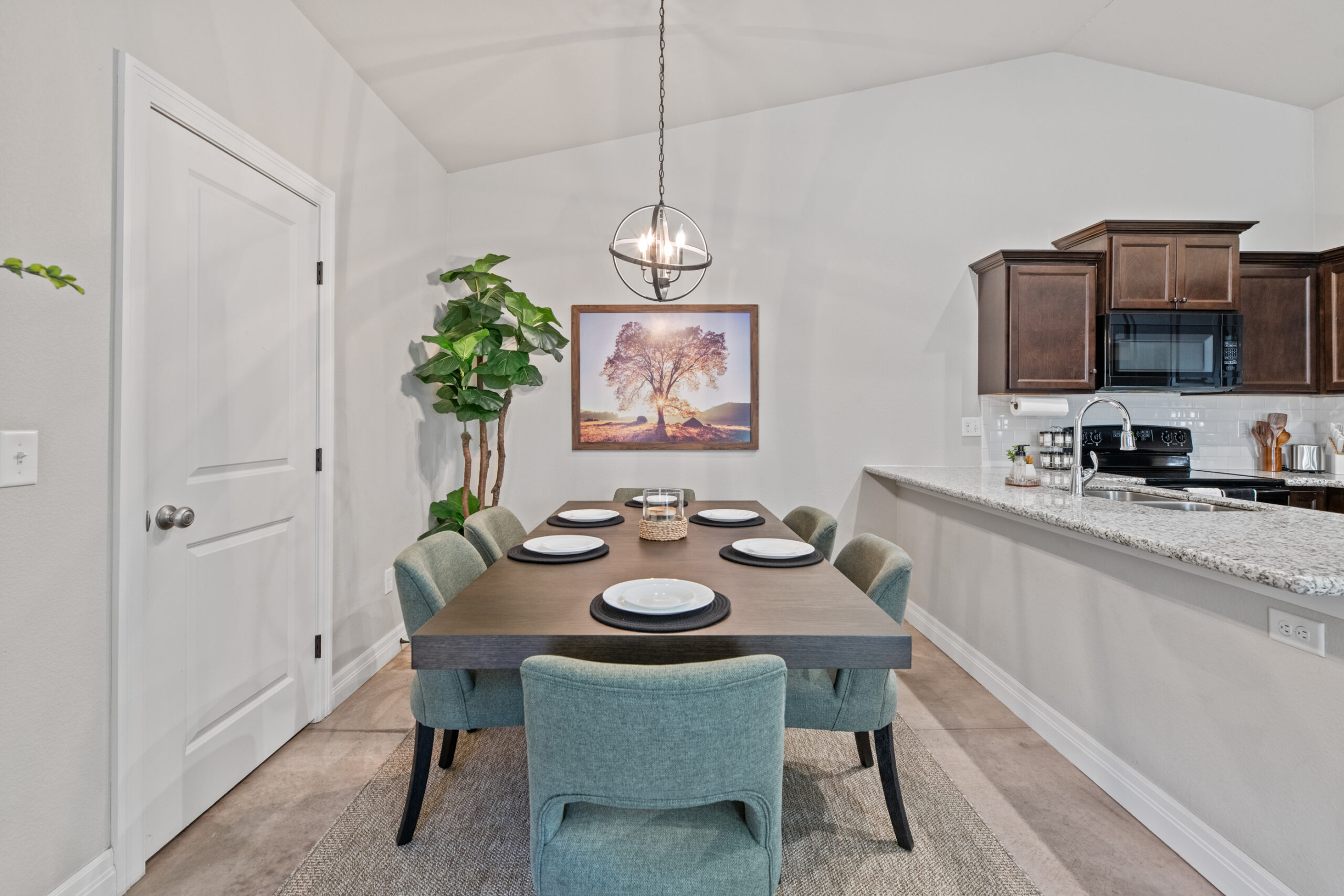 The dining room includes a comfortable, modern dining table. The kitchen is well stocked with coffee, pots and pans, cooking utensils, and baking trays for your use and enjoyment!